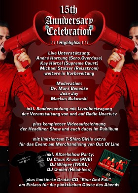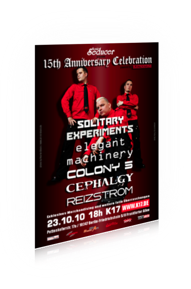 Besondere Jubiläen schreien nach besonderen Events und Solitary Experiments haben es sich nicht nehmen lassen, zu ihrem 15. Bandjubiläum gleich ein ganzes Festival auf die Beine zu stellen! Es wird am 23. Oktober 2010 im Club K17 in ihrer Heimatstadt Berlin stattfinden und schon die Liste der Support-Bands liest sich ziemlich beeindruckend: Elegant Machinery, Cephalgy, Colony 5 & Reizstrom werden den Jungs an diesem Abend zur Seite stehen. Das ist aber noch lange nicht alles, denn es wird noch eine Aftershow-Party mit bekannten DJs geben, der „Herr der Maden“ Dr. Mark Benecke wird durch den Abend führen und man wird auch den einen oder anderen Überraschungsgast auf der Bühne begrüßen dürfen. Außerdem wird das Event als Livecast auf einem Internetradio übertragen, es gibt ein spezielles T-Shirt, eine limitierte Frei-CD für die Gäste, die pünktlich zur ersten Band im Club sind, und es werden sich auch diverse bekannte Szene-Persönlichkeiten blicken lassen. Na? Läuft euch schon das Wasser im Mund zusammen? Dieses Event solltet ihr definitiv nicht verpassen!