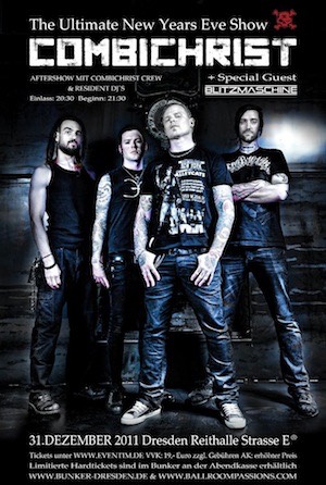 Das alte Jahr wird mit einer monströsen Soundkulisse abgefackelt. Keine geringeren als die Mannen von RAMMSTEINs Support-Band 2009/2010, nämlich COMBICHRIST leiten den Silvestercountdown ein und bieten im Anschluss eine fulminante Aftershow-Party, auf der Teile von Band und Crew auch selbst auflegen werden. Unterstützt wird dieses Vorhaben von den Resident-DJs (wie z.B. DJ Merlin) und dem Hamburger EBM-Trio BLITZMASCHINE.
