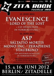Auf ihrem im Herbst 2011 veröffentlichten Studioalbum „Evanescence“ unterstrichen die US-Megastars erneut ihre besondere Klasse und legten eine musikalische Tour de Force vor, die ihres gleichen sucht. Der Auftritt beim Zita Rock 2012 ist der einzige Auftritt von Evanescence in Ostdeutschland in diesem Jahr.