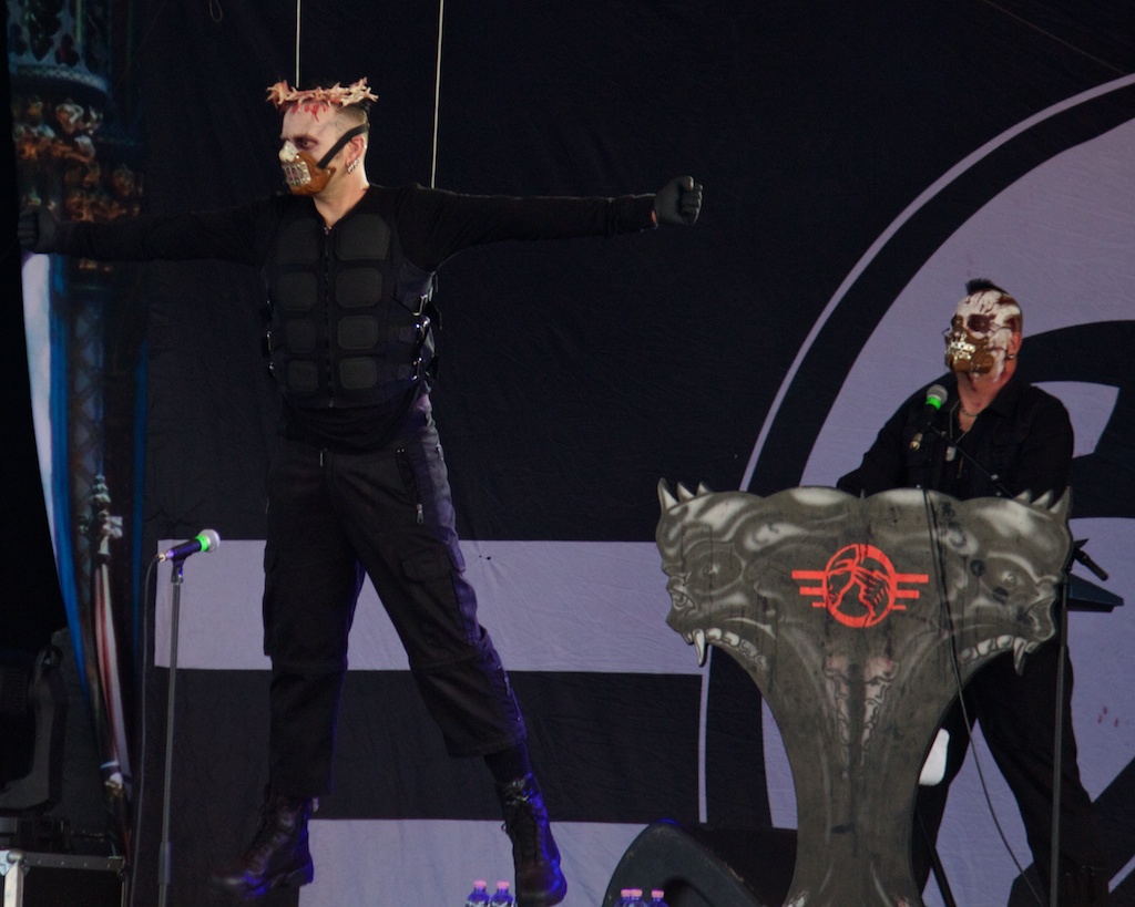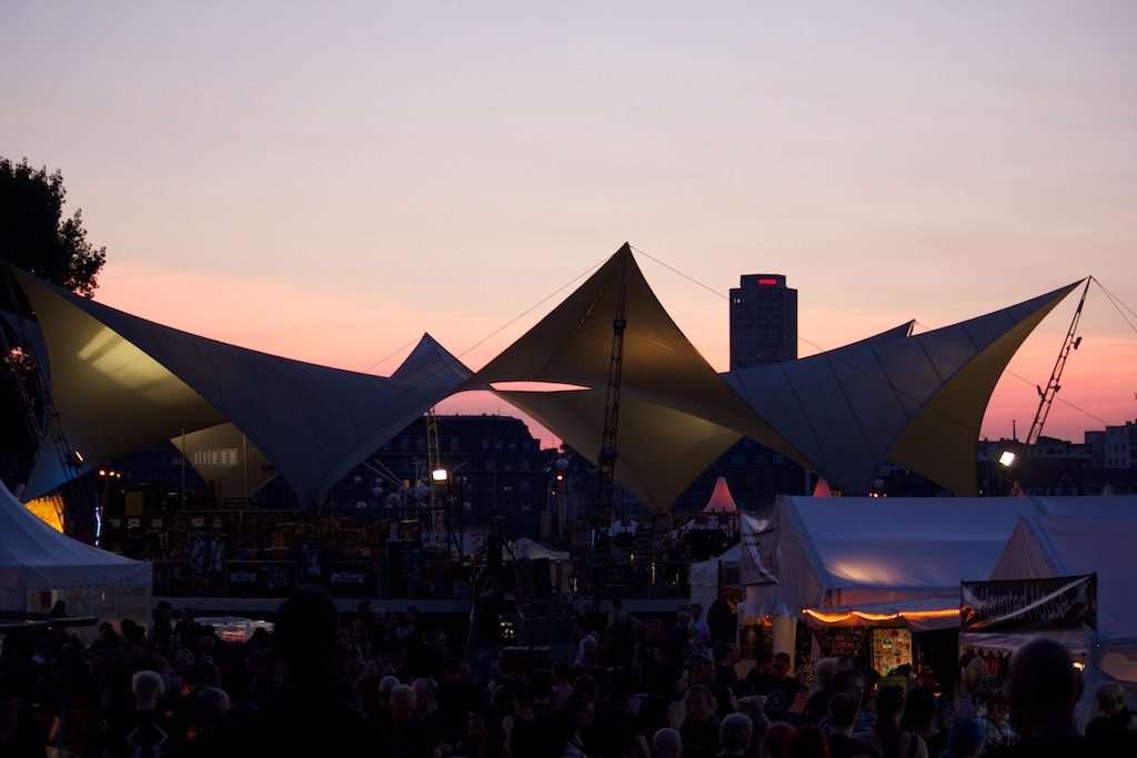 Draußen auf der Mainstage ging es derweil rockig weiter mit Letzte Instanz, Diary of Dreams und Oomph!. Das alles bei brütender Hitze, weshalb die Trinkwasserstellen samt kalter Dusche zu den beliebtesten Plätzen zählten, neben den überdachten Bereichen vor der Mainstage.