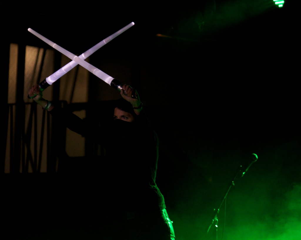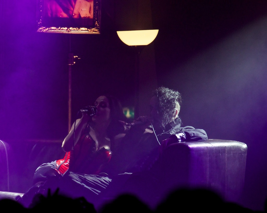 Im Theater gab es nach den Konzerten von Dunkelschön, Escape with Romeo und Rome einen DVD-Abend mit Welle: Erdball und Zugaben. Anfangs verlor man noch ein paar Worte zum Aufstieg von Frl. Plastique und präsentierte dann die DVD zum 20jährigen Jubiläum, die auch einen Ausblick auf der kommende Album gewähnrt. Mit auf der Bühne waren auch viele Weggefährten der Band und Frl. Venus. Zum Abschluss wurde noch „Die Gedanken sind frei“ mit dem Publikum zum Besten gegeben.