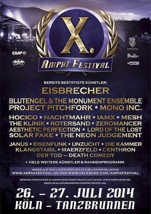 Das Amphi Festival 2014 findet am 26.07. & 27.07.2014 am Tanzbrunnen in Köln statt. Tickets gibt es offiziellen Amphi Shop und an allen bekannten Vorverkaufsstellen wie Eventim und Co.
